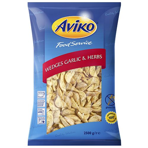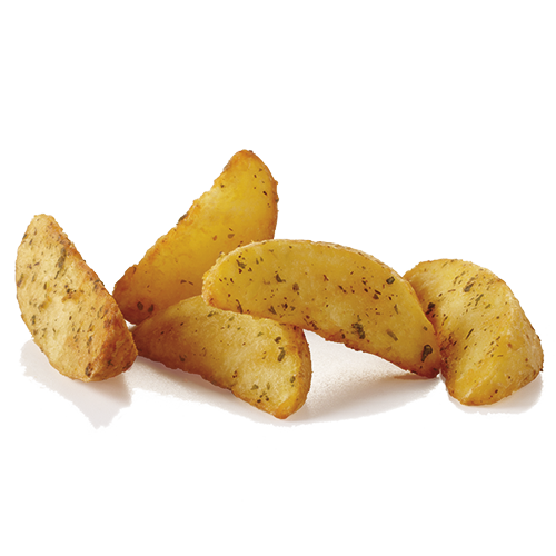 Quartiers de pommes de terre délicieusement épicés avec de l'ail et des fines herbes.