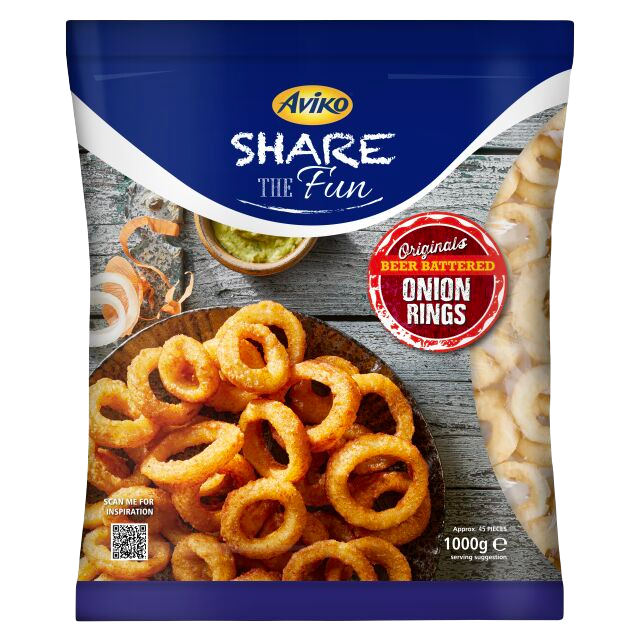 Aviko Beer Breaded Onion Rings snacks zijn gemaakt van hele uienringen met een coating van bierbeslag, hierdoor hebben ze na bereiding een goudgele kleur en krokante bite.