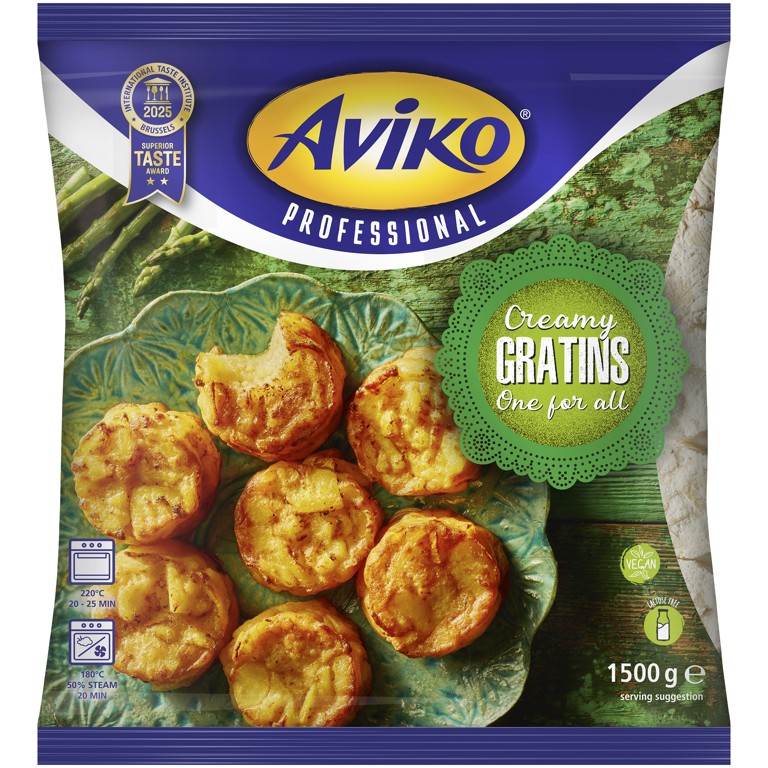 Een eersteklas aardappelgratin op plantaardige basis. Erkend met de Superior Taste Award door het International Taste Institute. Deze kant-en-klare, voorgedoseerde gratin zorgt voor consistentie, minder afval en bespaart uren voorbereidingstijd. Perfect voor catering en full-service restaurants.